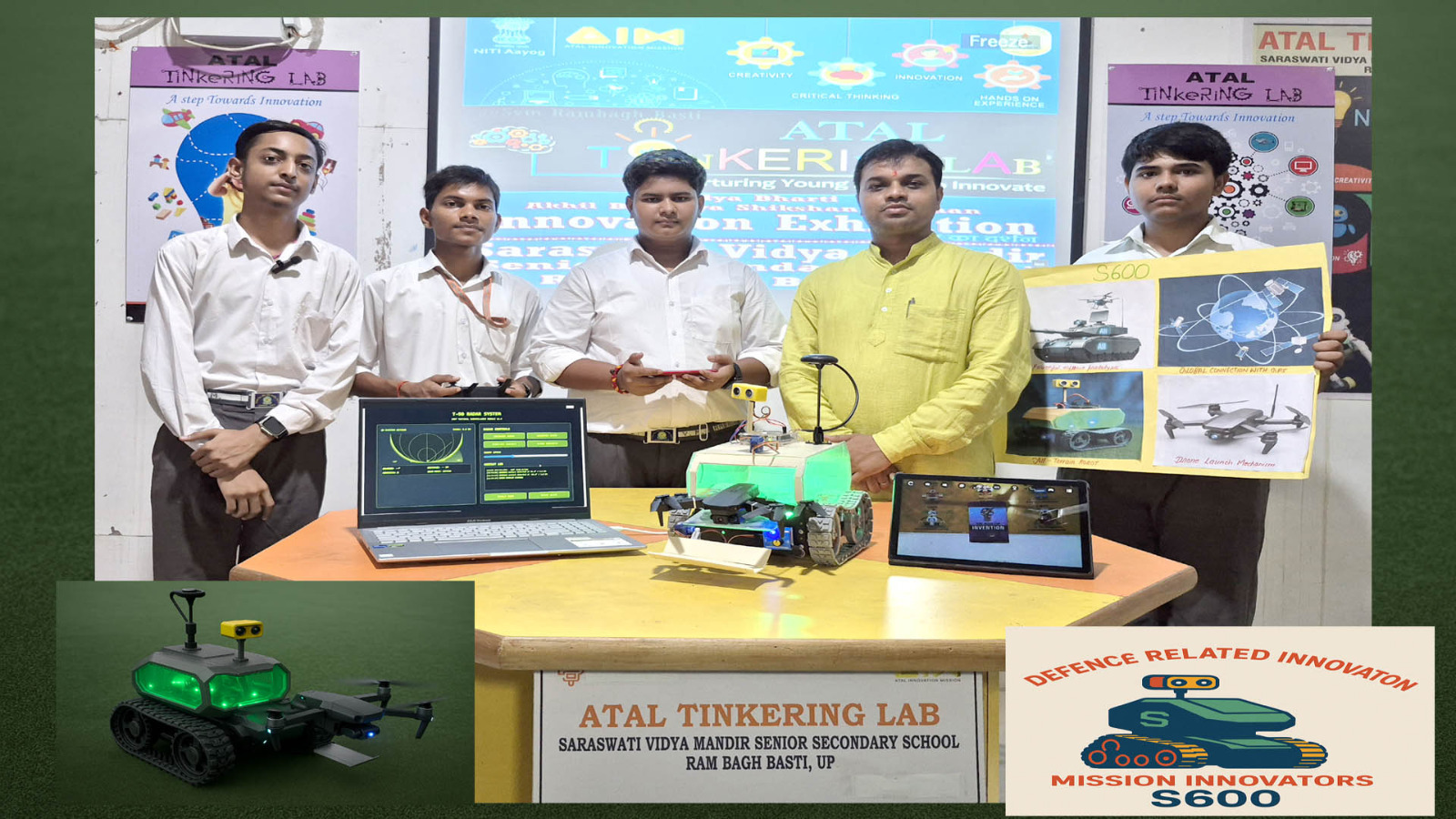 अखिल भारतीय अटल लैब स्तर पर आयोजित प्रतियोगिता में विद्या भारती पूर्वी उत्तर प्रदेश के गोरक्ष प्रान्त द्वारा संचालित सरस्वती विद्या मंदिर वरिष्ठ माध्यमिक विद्यालय, रामबाग बस्ती (गोरक्ष प्रांत, बस्ती) के अटल टिंकरिंग लैब से जुड़े भैया सचिन, सर्वेश शुक्ला एवं कृष्णा एवं अथर्व द्वारा तैयार प्रोजेक्ट “मिशन इनोवेशन S-600” को Vidya Bharati ATL Innovation Exhibition (जून थीम) के परिप्रेक्ष्य में अखिल भारतीय स्तर पर आयोजित प्रतियोगिता में विद्या भारती पूर्वी उत्तर प्रदेश क्षेत्र से प्रथम स्थान प्राप्त हुआ है।