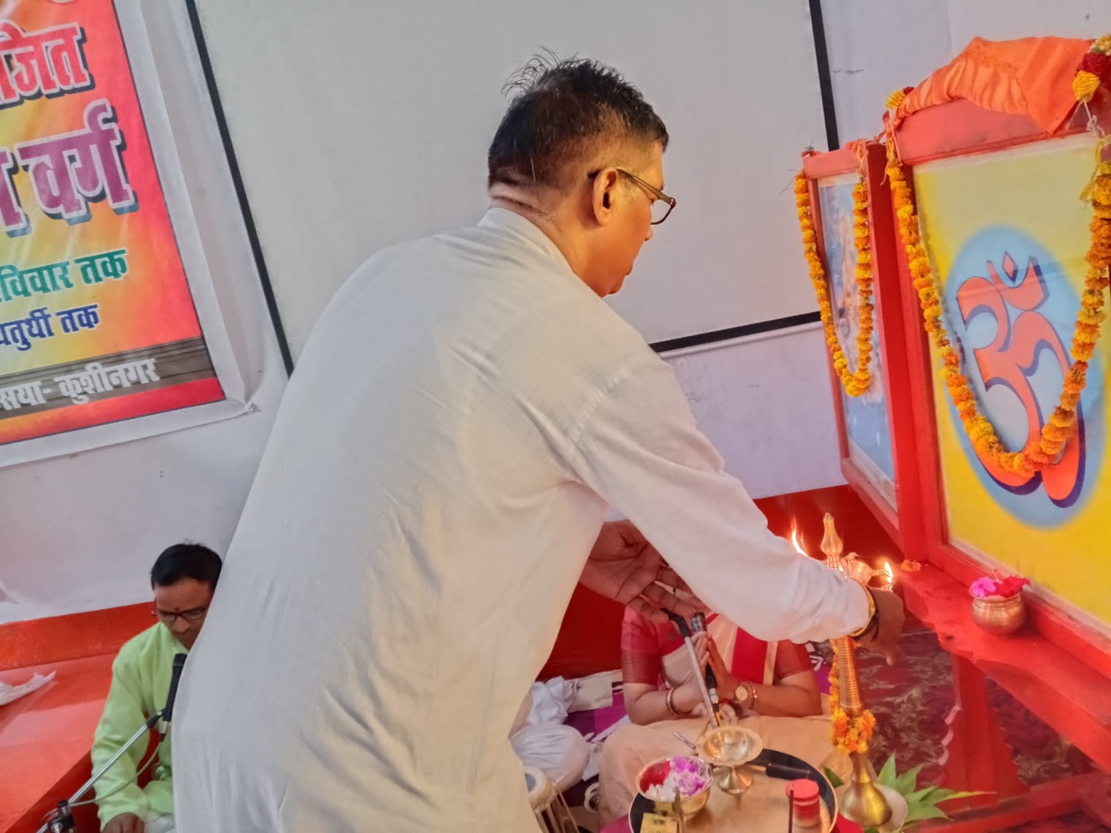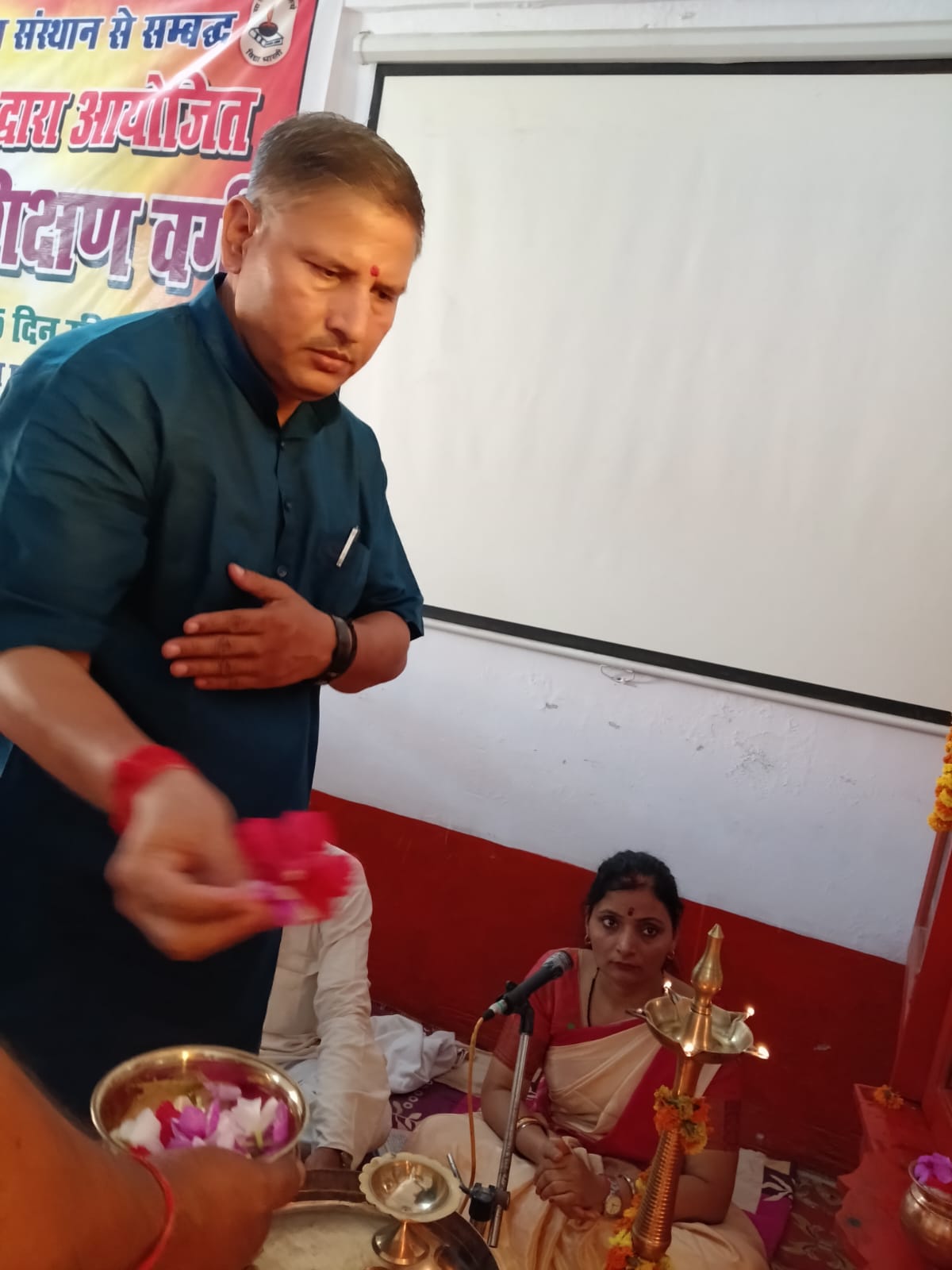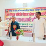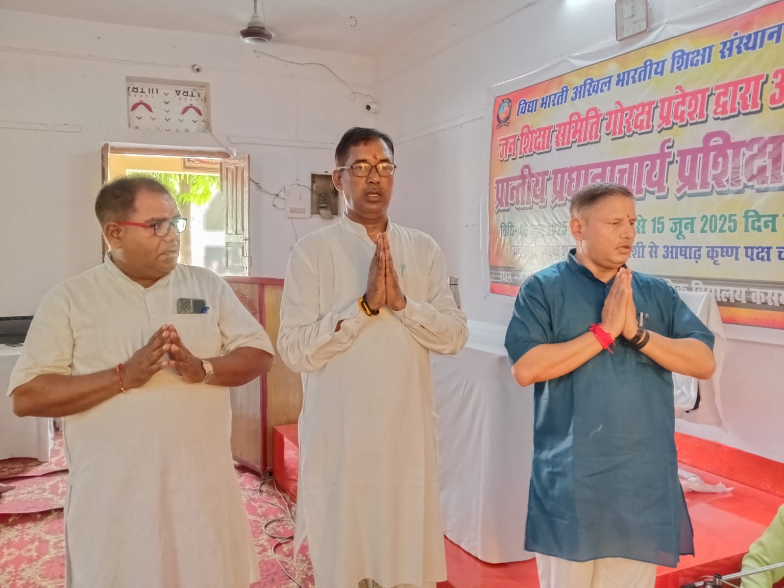 विद्या भारती जन शिक्षा समिति गोरक्ष प्रदेश द्वारा आयोजित प्रांतीय प्रधानाचार्य प्रशिक्षण वर्ग के पांचवें दिन विद्या भारती पूर्वी उत्तर प्रदेश क्षेत्र के सह क्षेत्रीय संगठन मंत्री डॉ राम मनोहर जी ने मां सरस्वती के चरणों में दीप प्रज्वलित कर विद्या भारती का लक्ष्य विषय पर अपना मार्गदर्शन दिया। महर्षि अरविन्द विद्या मंदिर वरिष्ठ माध्यमिक विद्यालय कसया कुशीनगर के वरिष्ठ आचार्य रणजीत उपाध्याय जी बैज लगाकर व अंगवस्त्र भेंट कर स्वागत किया। अपने उद्बोधन में क्षेत्रीय सह संगठन मंत्री जी ने कहा कि प्रतिदिन कुछ ना कुछ हम याद करें।मानव शरीर से हमारा परिचय और आत्मीय संबंध होना चाहिए। हमें अपने’ त्व ‘को विकसित करना चाहिए।जैसी दृष्टि वैसी सृष्टि का भाव जगता है। संस्कार का पक्ष हमारी भावना से है। डॉ राममनोहर जी ने कहा कि हम अपने वैशिष्ट्य को ना भूलें। यदि हम एक आचार्य हैं तो हमें विद्या भारती का लक्ष्य , गीता का स्मरण करना,