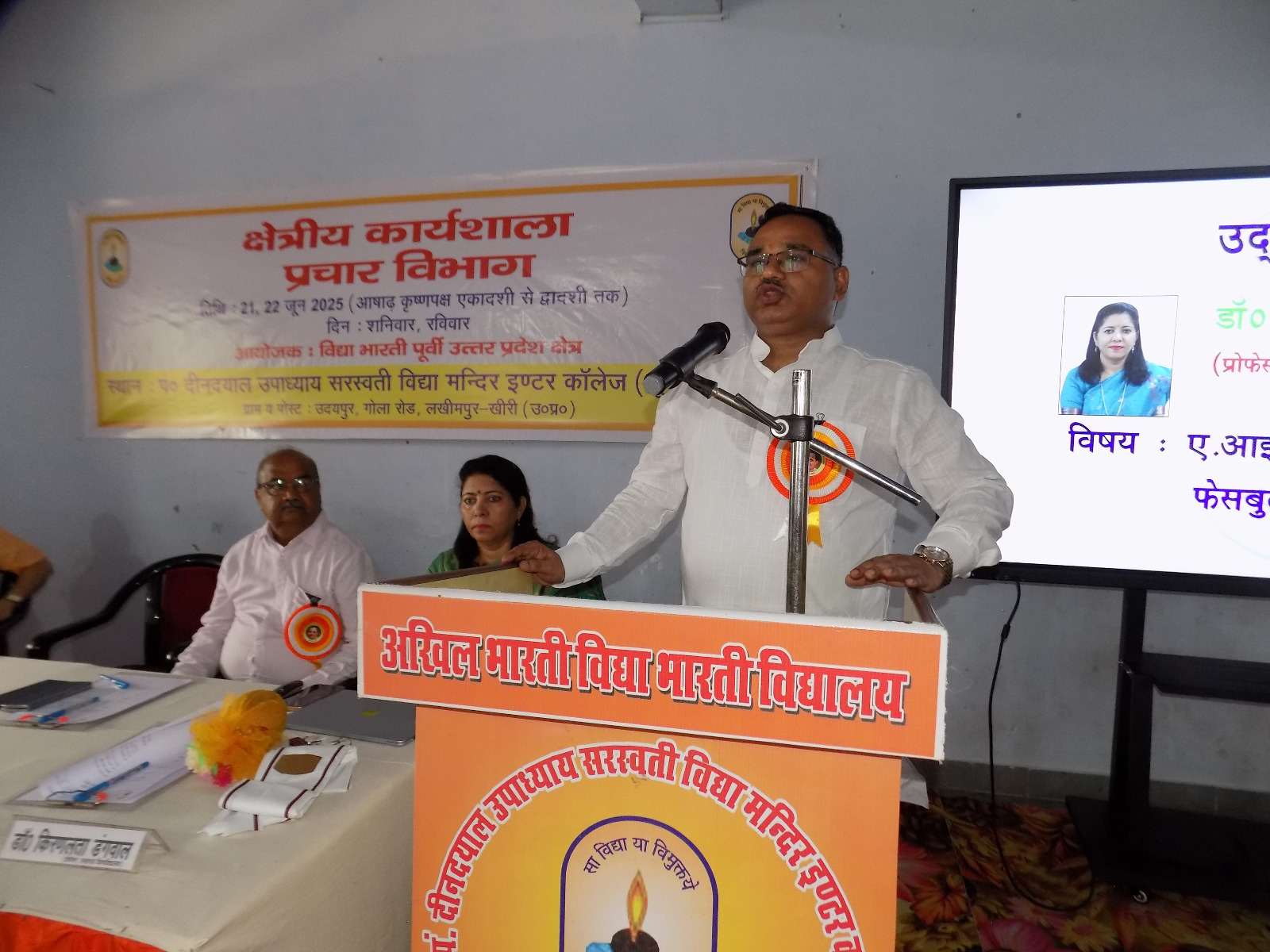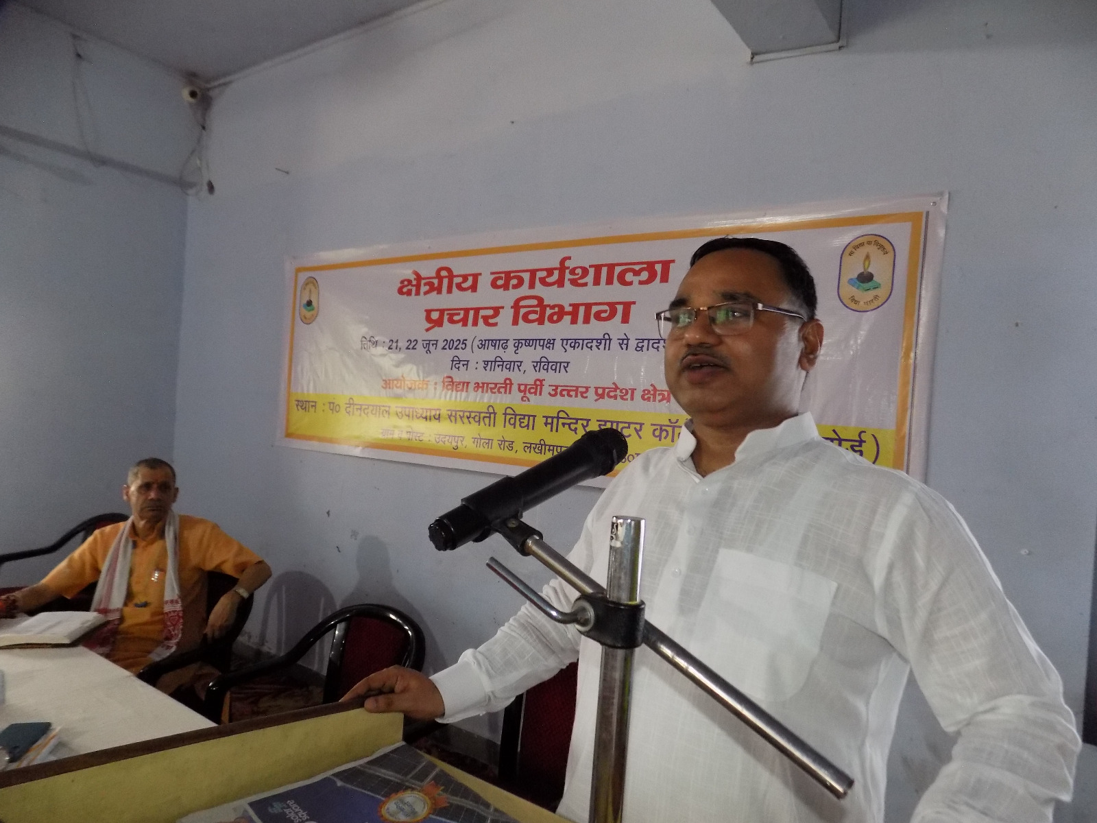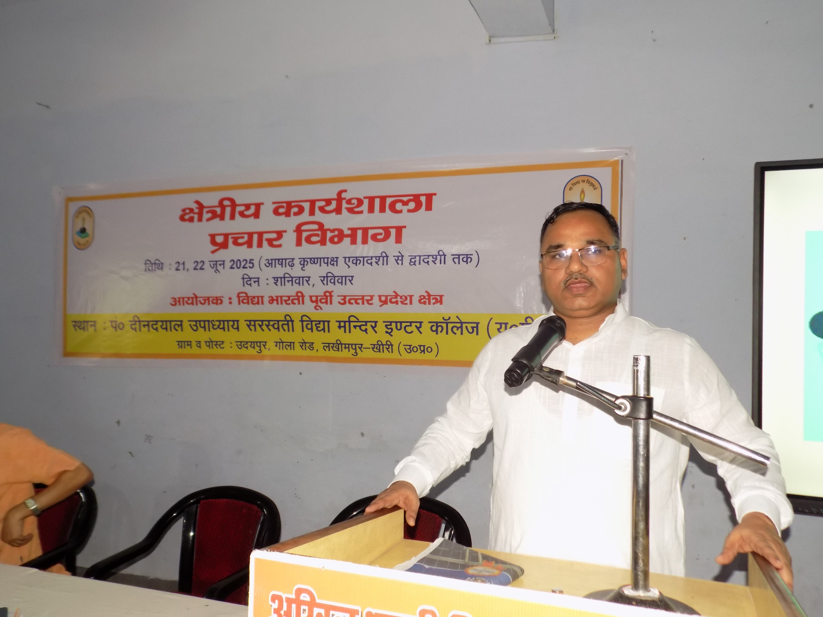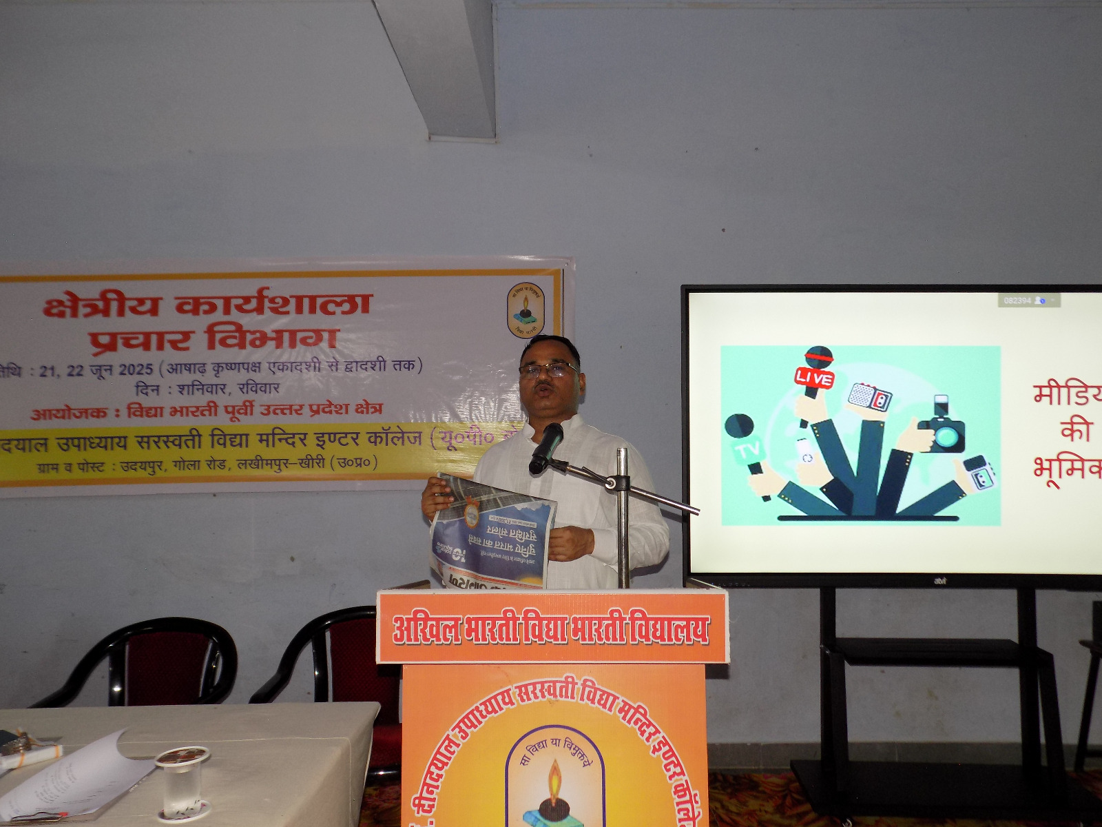 यह विचार विद्या भारती पूर्वी उत्तर प्रदेश क्षेत्र के क्षेत्रीय मंत्री , लखनऊ विश्वविद्यालय के प्रोफेसर व पत्रकारिता विभाग के विभागाध्यक्ष श्री सौरभ मालवीय ने शनिवार सायं प्रचार प्रसार विभाग की क्षेत्रीय कार्यशाला के परिचयात्मक सत्र को संबोधित करते हुए व्यक्त किए।