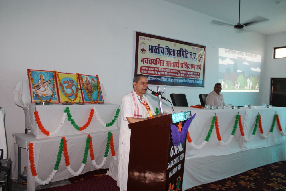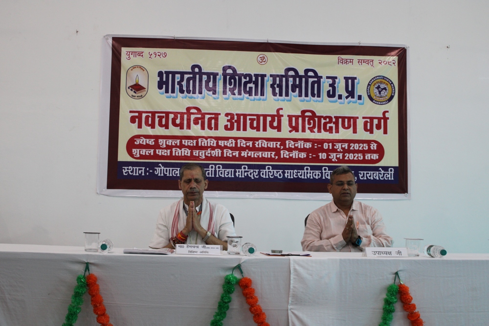 भारतीय शिक्षा समिति उ०प्र० द्वारा गोपाल सरस्वती विद्या मन्दिर वरिष्ठ माध्यमिक विद्यालय, रायबरेली में आयोजित कार्यक्रम का उद्घाटन विद्याभारती पूर्वी उत्तर प्रदेश के क्षेत्रीय संगठन मंत्री मा० हेमचन्द्र जी द्वारा माँ सरस्वती के दीप प्रज्ज्वलन, पुष्पार्चन तथा वंदन से प्रारंभ हुआ | तत्पश्चात मा० हेमचन्द्र जी ने नव चयनित आचार्यों को अपना समग्र विकास करने का मार्गदर्शन दिया | कार्यक्रम में भारतीय शिक्षा समिति उ०प्र० के प्रदेश निरिक्षक श्री रामजी सिंह व विद्यालय के उपाध्यक्ष उपस्थित रहे |