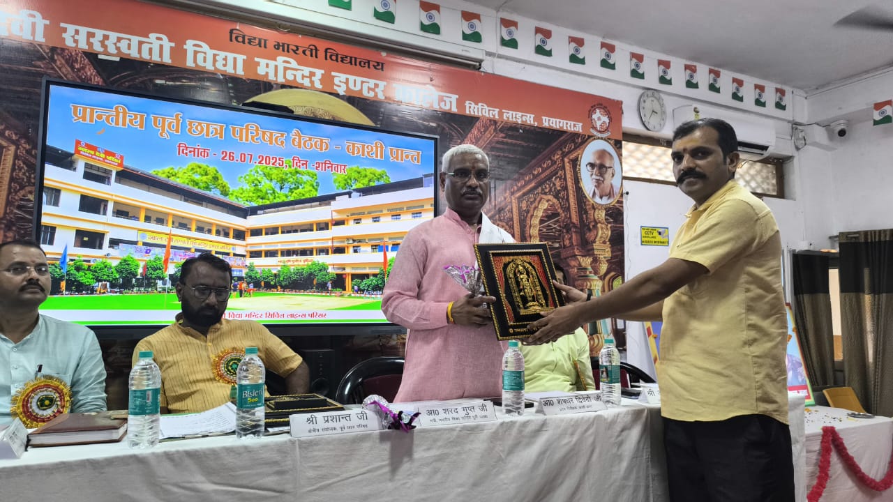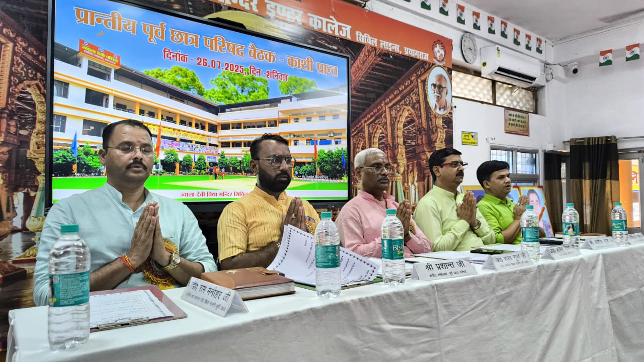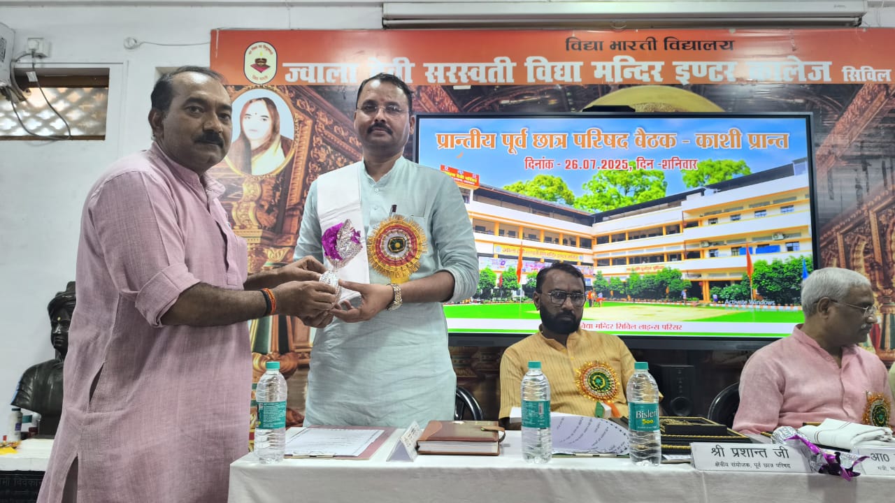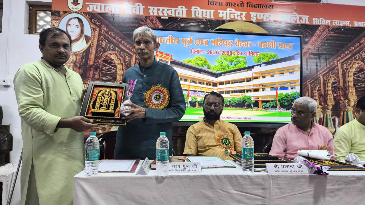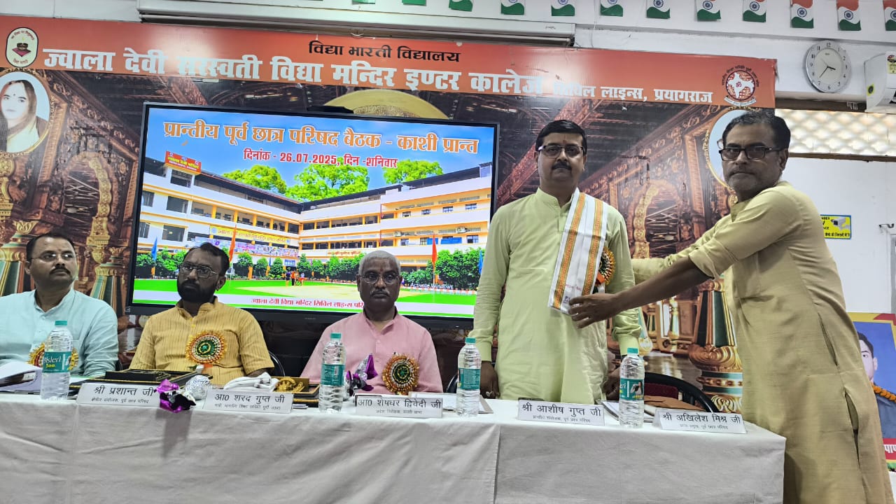 विद्या भारती काशी प्रान्त के अंतर्गत ’पूर्व छात्र परिषद’ की प्रान्तीय बैठक दिनांक ’’26 जुलाई 2025’’ को ’ज्वाला देवी सरस्वती विद्या मन्दिर, सिविल लाइन्स, प्रयागराज’ के विशाल सभागार में सम्पन्न हुई। यह बैठक पूर्व छात्रों को संगठन से जोड़े रखने, उनके अनुभवों का उपयोग समाज व राष्ट्रहित में करने तथा परिषद की भावी दिशा व कार्ययोजनाओं पर चर्चा हेतु आयोजित की गई।
