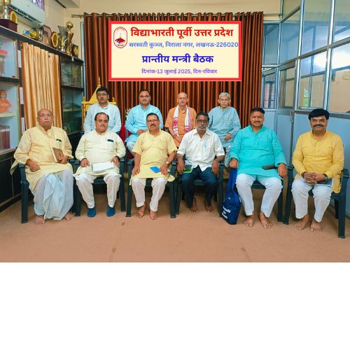 दिनांक 13 जुलाई 2025 को विद्या भारती पूर्वी उत्तर प्रदेश क्षेत्र द्वारा आयोजित प्रान्तीय मंत्रियों की बैठक में सभी ने प्रतिभाग किया | बैठक में विद्या भारती पूर्वी उत्तर प्रदेश के क्षेत्रीय संगठन मंत्री मा० हेमचन्द्र जी तथा विद्या भारती पूर्वी उत्तर प्रदेश के क्षेत्रीय मंत्री डॉ० सौरभ मालवीय उपस्थित रहे | सौरभ जी ने सभी सदस्यों से आगामी कार्ययोजना बनाने का आग्रह करते हुए अपनी कार्ययोजना का विस्तार किया |