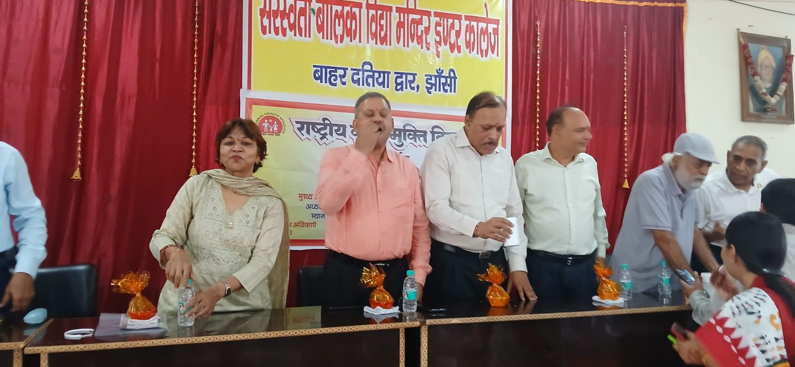 आज दिनांक 11 अगस्त 2025 को स्वास्थ्य विभाग के तत्वाधान में सरस्वती बालिका विद्या मंदिर इंटर कॉलेज,बाहर दतिया गेट झांसी में राष्ट्रीय कृमि मुक्ति दिवस के अंतर्गत शुभारंभ कार्यक्रम संपन्न हुआ। इस अवसर पर डॉ.शालू गुप्ता (संयुक्त निदेशक RKSK, लखनऊ),डॉ.सुधाकर पांडेय (मुख्य चिकित्सा अधिकारी जिला झांसी),विद्यालय प्रबन्ध समिति से अध्यक्ष डॉ.ए.के.सांवल,कोषाध्यक्ष डॉ.प्रदीप श्रीवास्तव,स्वास्थ्य विभाग से अन्य डॉक्टर आदि उपस्थित रहे।