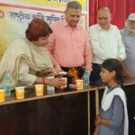 कार्यक्रम में उपस्थित समस्त सम्मानित अतिथि,आचार्य बंधु,आचार्या बहनें,छात्र-छात्रा को एल्बेंडाजोल टेबलेट खिलाई गई।
