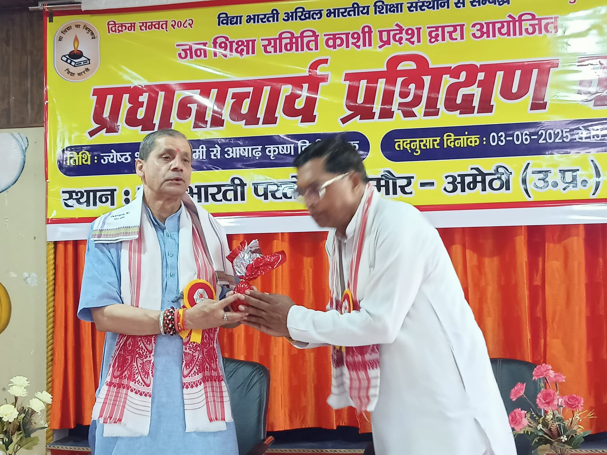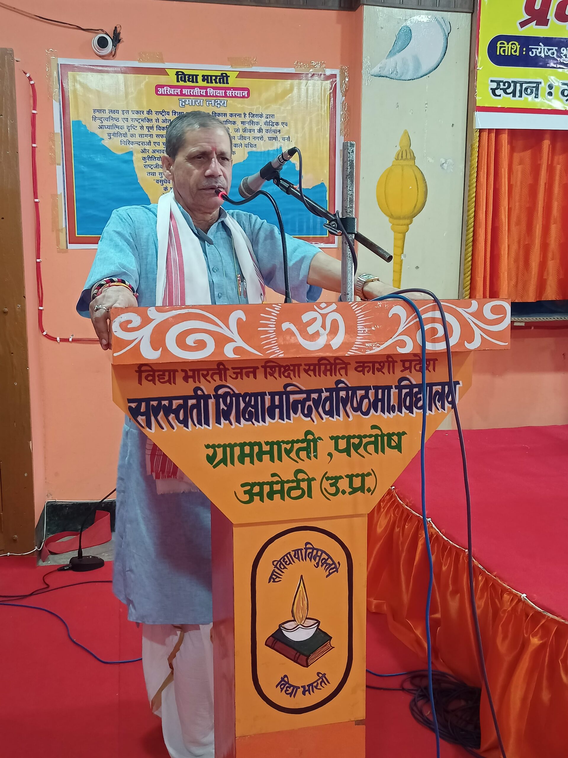 सरस्वती शिक्षा मंदिर वरिष्ठ माध्यमिक विद्यालय ग्रामभारती परतोष अमेठी के विशाल सभागार में मुख्य अतिथि क्षेत्रीय संगठन मंत्री हेमचंद्र, सह संगठन मंत्री डॉ राम मनोहर ,जिला मंत्री अमेठी ओंकार नाथ शुक्ला, संभाग निरीक्षक उपस्थित रहे। प्रदेश निरीक्षक राज बहादुर दीक्षित ने अतिथि महानुभाव का परिचय कराते हुए श्रीफल एवं अंग वस्त्र से आपका स्वागत किया। प्रांतीय प्रचार प्रमुख संतोष मिश्र के अनुसार काशी प्रांत से आए हुए 30 प्रधानाचार्य वन्धुओं का स्वागत एवं अभिनंदन किया गया |