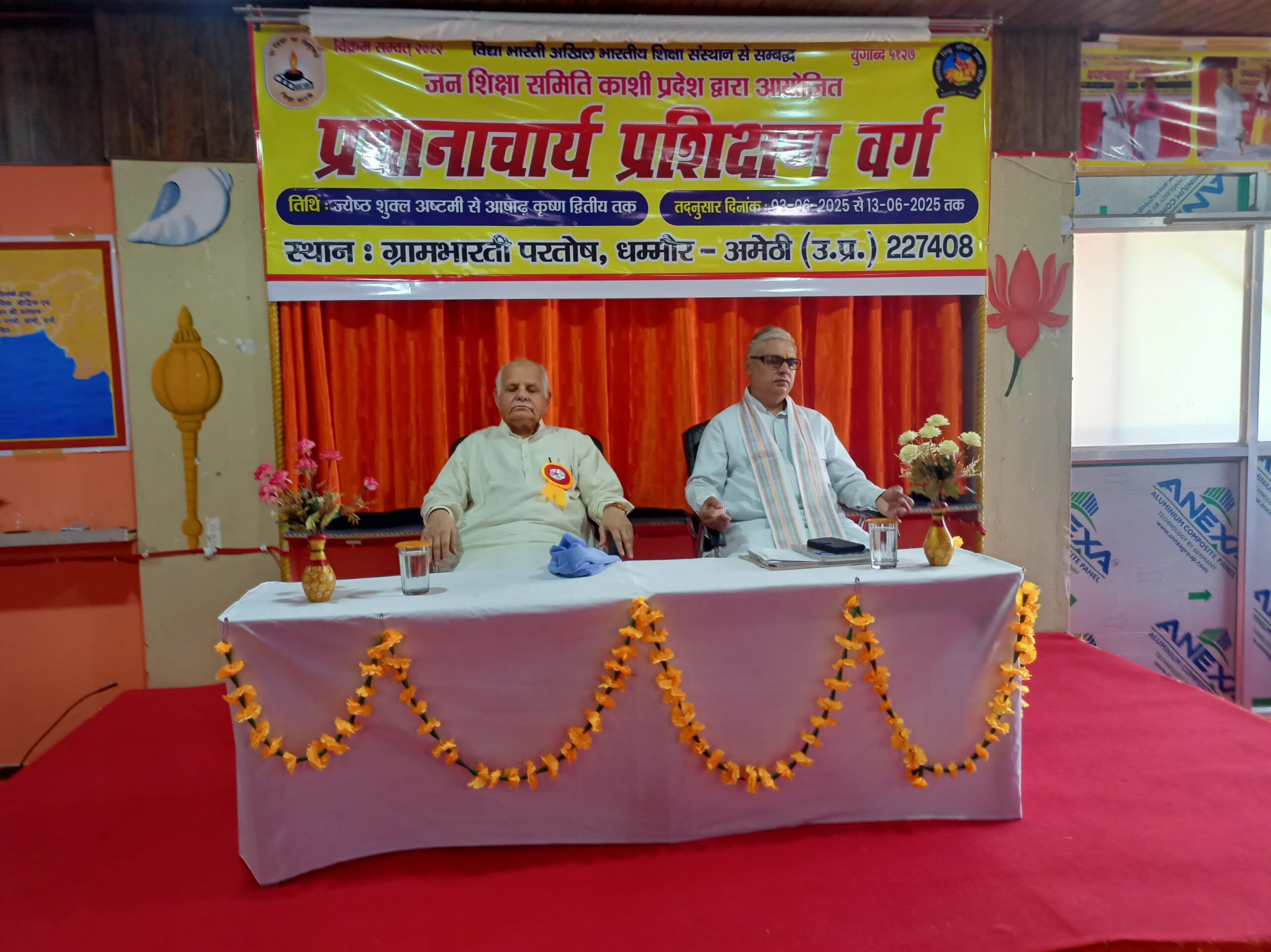 विद्या भारती द्वारा संचालित जन शिक्षा समिति काशी प्रदेश द्वारा आयोजित इन दिनों सरस्वती शिक्षा मंदिर वरिष्ठ माध्यमिक विद्यालय ग्रामभारती परतोष अमेठी में 10 दिवसीय प्रधानाचार्य प्रशिक्षण वर्ग के नवम दिवस पर विद्या भारती अखिल भारतीय शिक्षा संस्थान के राष्ट्रीय सह संगठन मंत्री एवं संघ के वरिष्ठ प्रचारक यतीन्द्र कुमार शर्मा द्वारा मां सरस्वती का पूजन किया गया।