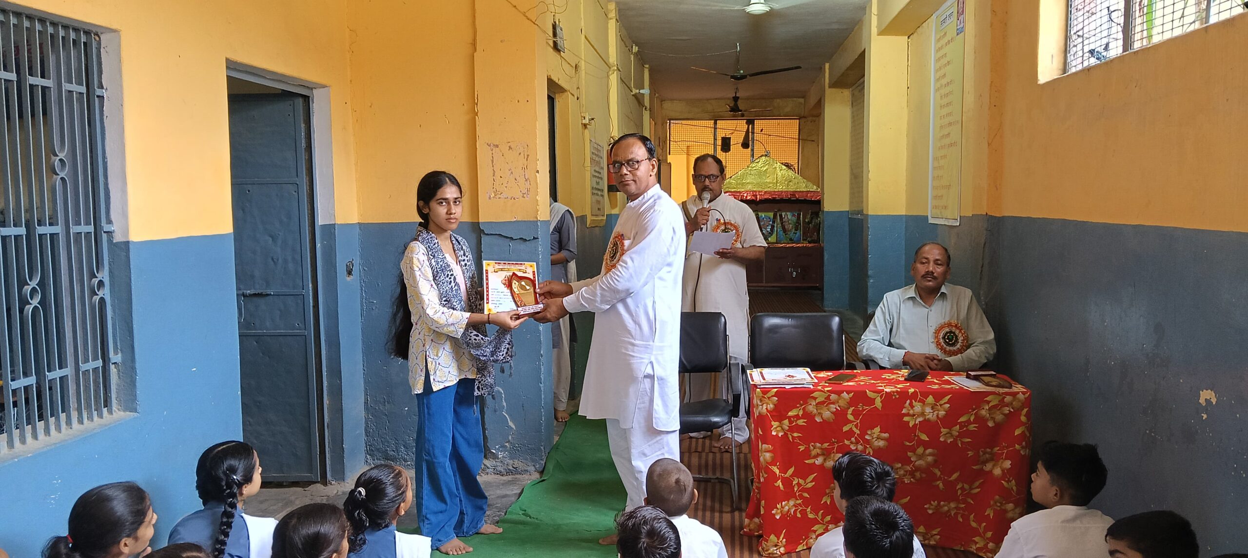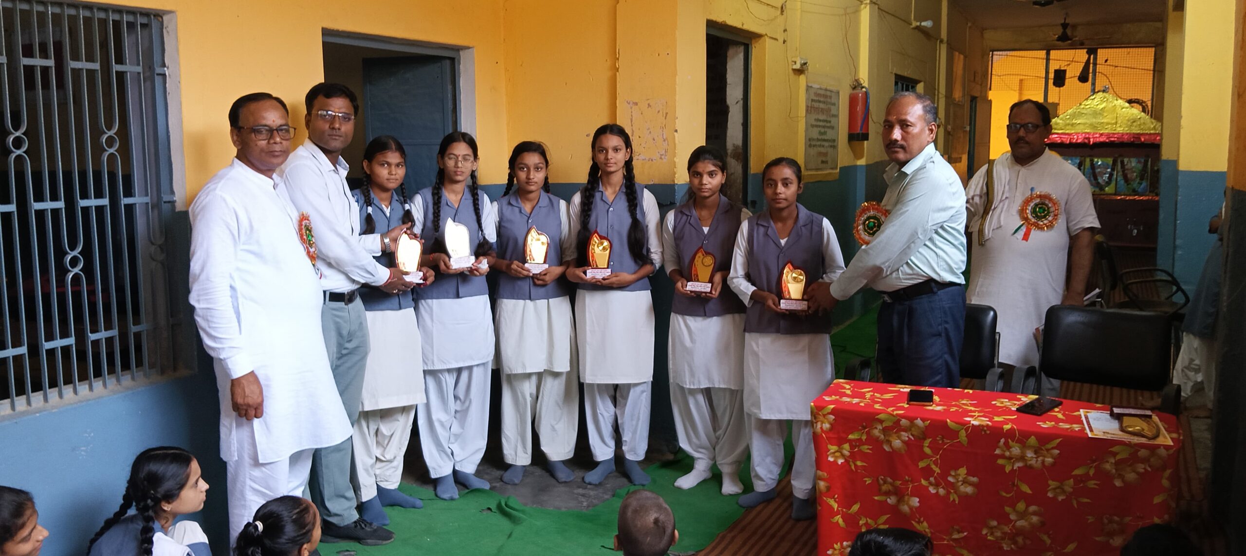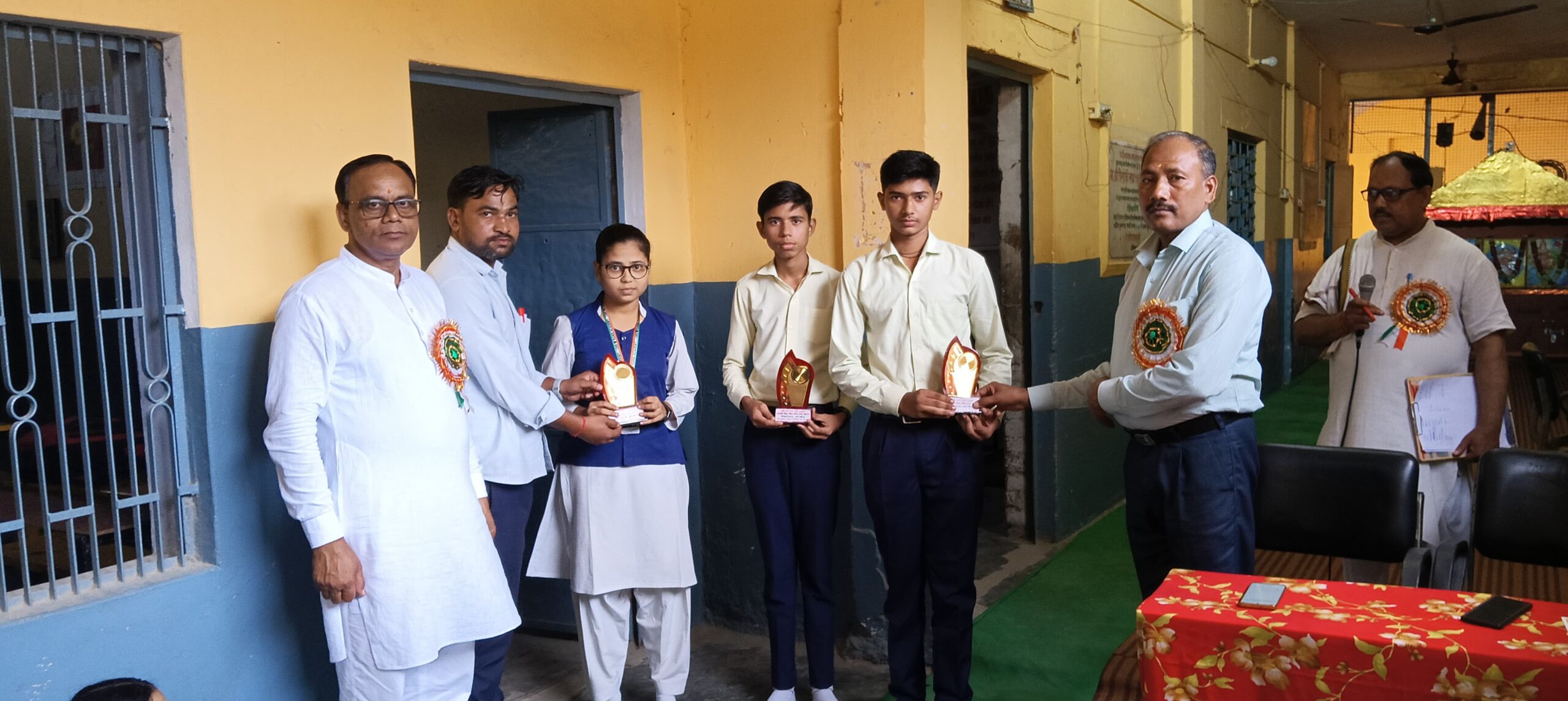 श्रीमती गंगा देवी चतुर्वेदी सरस्वती शिशु, विद्या मन्दिर इण्टर कॉलेज छिबरामऊ (कन्नौज) में आज दिनांक 04/08/2025 को संस्कृति बोध परियोजना के अन्तर्गत सम्पन्न संस्कृति ज्ञान परीक्षा में कक्षा तृतीय से द्वादश के सर्वाधिक अंक प्राप्त करने वाले भैया/बहिनों एवं शिक्षकों को प्रतीक चिह्न और प्रमाणपत्र भेंट कर सम्मानित किया गया।