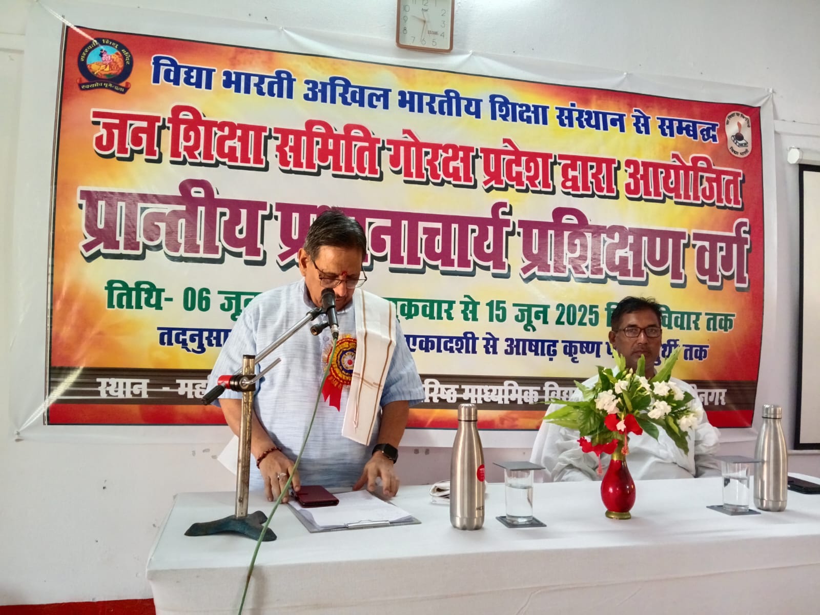 विद्या भारती जन शिक्षा समिति गोरक्ष प्रांत द्वारा आयोजित प्रांतीय प्रधानाचार्य प्रशिक्षण वर्ग के चौथे दिन के प्रथम सत्र में राष्ट्रीय शिक्षा नीति 2020 के अनुसार प्रधानाचार्य की कार्ययोजना विषय पर श्रीराम आरावकर अखिल भारतीय सह संगठन मंत्री विद्या भारती,जी ने अपना मार्गदर्शन प्रधानाचार्य बंधुओं को दिया। कार्यक्रम का प्रारंभ मां सरस्वती के चरणों में दीप प्रज्वलित कर, सरस्वती वंदना से प्रारंभ हुआ। मुख्य अतिथि का परिचय दिवाकर राम त्रिपाठी संभाग निरीक्षक आर्यमगढ़ ने कराया। श्रीराम आरावकर जी ने कहा कि प्रधानाचार्य ,आचार्य ही है। वह शैक्षणिक नेतृत्व कर्ता है। वर्तमान समय में आचार्य को अपग्रेड होना होगा। मनुष्य अपने अंतर्मन से प्रेरणा लेता है। स्वभाव, प्रभाव व दबाव तीन प्रकार से लोग काम करते हैं। हमारी शिक्षा बाल केंद्रित, क्रिया आधारित व भारत केंद्रित होना चाहिए। बिना अभ्यास के बोध स्थायी नहीं होगा। बिना भाव के पढ़ाई नीरस होती है। राष्ट्रीय शिक्षा नीति 2020 में शिक्षण के भारतीय ज्ञान परम्परा को जोड़ना है।हम विद्यालय व शिक्षकों को अपग्रेड करें, जिससे विद्यार्थियों का सर्वांगीण विकास हो सके।आज के कार्यक्रम का संचालन चंद्र भूषण पांडेय प्रधानाचार्य द्रोपदी देवी गीता देवी सरस्वती विद्या मंदिर इंटर कालेज लुचुई, सहजनवां गोरखपुर ने किया। जन शिक्षा समिति गोरक्ष प्रदेश के प्रदेश निरीक्षक जियालाल जी ने राष्ट्रीय सह संगठन मंत्री विद्या भारती के प्रति आभार ज्ञापित किया।