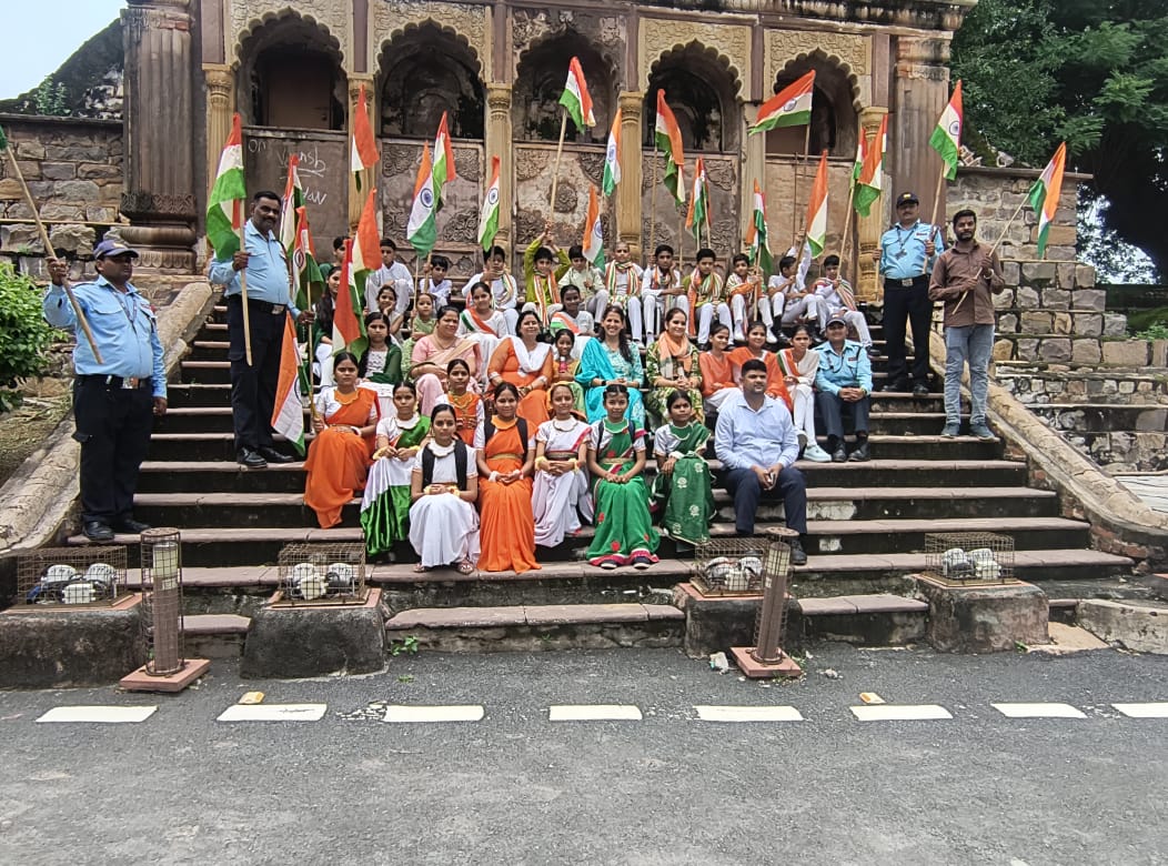 *दिनांक 2 अगस्त 2025 से 15 अगस्त 2025 तक चलाए जा रहे “हर घर तिरंगा” अभियान 2025 के अंतर्गत आज दिनांक 05.08.2025 को सरस्वती बालिका विद्या मंदिर इंटर कॉलेज,बाहर दतिया गेट झांसी की छात्रा बहन लावन्या साहू,सौम्या कुशवाहा,सोनल कुशवाहा,लीना प्रजापति,माही झा,आराध्या सोनी,यदि कुशवाहा,नूपुर कुशवाहा ने ऐतिहासिक स्थल रानी झांसी दुर्ग के पंचमहल भवन में सांस्कृतिक कार्यक्रम में सहभागिता की एवं “तिरंगे के रंगों में” परिधान प्रतियोगिता में अपनी प्रस्तुति प्रस्तुत की।*