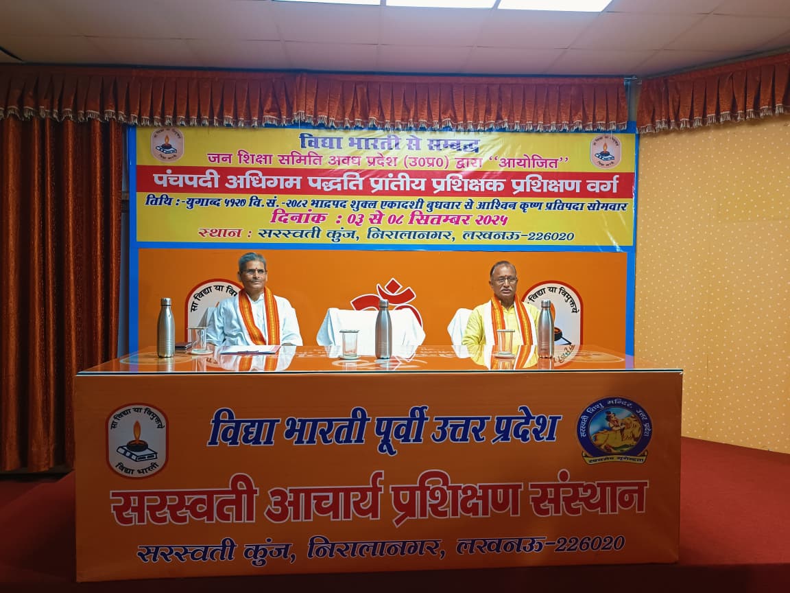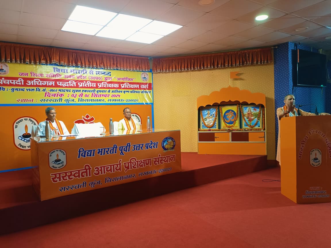рдЬрди рд╢рд┐рдХреНрд╖рд╛ рд╕рдорд┐рддрд┐ рдЕрд╡рдз рдкреНрд░рд╛рдиреНрдд рджреНрд╡рд╛рд░рд╛ рдЖрдпреЛрдЬрд┐рдд рдкрд╛рдБрдЪ рджрд┐рд╡рд╕реАрдп (03-08 рд╕рд┐рддрдореНрдмрд░ 2025) рдкреНрд░рд╛рдиреНрддреАрдп рдкрдВрдЪрдкрджреА рдХрд╛рд░реНрдпрд╢рд╛рд▓рд╛ рдХрд╛ рднрд╡реНрдп рд╢реБрднрд╛рд░рдореНрдн рд╕рд░рд╕реНрд╡рддреА рдХреБрдЮреНрдЬ, рдирд┐рд░рд╛рд▓рд╛ рдирдЧрд░ рдореЗрдВ рдорд╛рдБ рд╕рд░рд╕реНрд╡рддреА рдХреА рд╡рдВрджрдирд╛, рдкреБрд╖реНрдкрд╛рд░реНрдЪрди рдПрд╡рдВ рджреАрдк рдкреНрд░рдЬреНрдЬреНрд╡рд▓рди рдХреЗ рд╕рд╛рде рд╕рдореНрдкрдиреНрди рд╣реБрдЖред