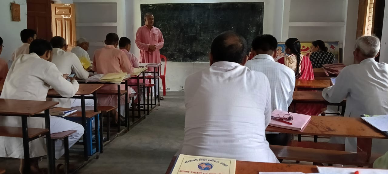 рдЖрдЬ рджрд┐рдирд╛рдВрдХ 31/07/25 рджрд┐рди рдЧреБрд░реБрд╡рд╛рд░ рдХреЛ рд╕рд░рд╕реНрд╡рддреА рд╢рд┐рдХреНрд╖рд╛ рдордВрджрд┐рд░ рд╡рд░рд┐рд╖реНрда рдорд╛рдзреНрдпрдорд┐рдХ рд╡рд┐рджреНрдпрд╛рд▓рдп рдЧреНрд░рд╛рдорднрд╛рд░рддреА рдкрд░рд┐рддреЛрд╖ рдЕрдореЗрдареА рдореЗрдВ рд╡рд┐рджреНрдпрд╛рднрд╛рд░рддреА рдХреА рдкреНрд░рд╛рдВрддреАрдп рдпреЛрдЬрдирд╛ рдХреЗ рдЕрдиреНрддрд░реНрдЧрдд рд╡рд┐рджреНрдпрд╛рд▓рдп рдореЗрдВ рдЖрдЪрд╛рд░реНрдп рджрдХреНрд╖рддрд╛ рд╡рд░реНрдЧ рдХрд╛ рдЖрдпреЛрдЬрди рдХрд┐рдпрд╛ рдЧрдпрд╛ред рдЗрд╕ рдЕрд╡рд╕рд░ рдкрд░ рдкреНрд░рд╛рддрдГ 9.00 рдмрдЬреЗ рд╕реЗ 4.00 рдмрдЬреЗ рддрдХ рдХреА рдпреЛрдЬрдирд╛ рдкреНрд░рдзрд╛рдирд╛рдЪрд╛рд░реНрдп рд╕рдиреНрддреЛрд╖ рдорд┐рд╢реНрд░ рдЬреА рдиреЗ рдмрддрд╛рдпрд╛ред рд╕рд░реНрд╡ рдкреНрд░рдердо рд╕рд░рд╕реНрд╡рддреА рд╡рдиреНрджрдирд╛ рд╕рд╛рдореВрд╣рд┐рдХ рд╕рдореНрдкрдиреНрди рд╣реБрдИред рддрддреНрдкрд╢реНрдЪрд╛рдд рдЖрдЪрд╛рд░реНрдп рдмрдВрдзреБ/ рднрдЧрд┐рдиреА рджреНрд╡рд╛рд░рд╛ рджреАрдк рдордВрддреНрд░, рд╣рдорд╛рд░рд╛ рд▓рдХреНрд╖реНрдп,рдкреНрд░реЗрд░рдХ рдкреНрд░рд╕рдВрдЧ рдХрд╛ рдЕрднреНрдпрд╛рд╕ рдХреНрд░рдорд╢рдГ рдХрд┐рдпрд╛ рдЧрдпрд╛ред рдкреНрд░рд╛рдиреНрдд рдкреНрд░рд╢рд┐рдХреНрд╖рдг рдкреНрд░рдореБрдЦ рд░рд╛рдордирдпрди рдЬреА рдиреЗ N E P 2020 рдХреЗ рдЕрдиреНрддрд░реНрдЧрдд рдкрдВрдЪрджреАрдк рдЕрдзрд┐рдЧрдо рдкрджреНрдзрддрд┐ рдХреЗ рдЖрдзрд╛рд░ рдкрд░ рдкрд╛рда рдпреЛрдЬрдирд╛ рдмрдирд╛рдирд╛ рдмрддрд╛рдпрд╛ рдЧрдпрд╛ред рд╕рднреА рдЖрдЪрд╛рд░реНрдп рдмрдВрдзреБ/ рднрдЧрд┐рдиреА рджреНрд╡рд╛рд░рд╛ рдкрд╛рда рдпреЛрдЬрдирд╛ рдмрдирд╛рдпреА рдЧрдпреАред рдкреНрд░рдзрд╛рдирд╛рдЪрд╛рд░реНрдп рдЬреА рдиреЗ рдмрддрд╛рдпрд╛ рдХрд┐ рдЕрдзреНрдпрд╛рдкрди рдХреЗ рд╕рдордп рдкрдВрдЪрдкрджреАрдп рдкрджреНрдзрддрд┐ рдХреЗ рдЪрд░рдгреЛрдВ рдХрд╛ рдкрд╛рд▓рди рдХрд░рддреЗ рд╣реБрдП рдХрд╛рдард┐рдиреНрдп рдирд┐рд╡рд╛рд░рдг рдХреЗ рд▓рд┐рдП рднреИрдпрд╛ / рдмрд╣рдиреЛрдВ рдХреА рдЕрдзрд┐рдХрд╛рдзрд┐рдХ рд╕рд╣рднрд╛рдЧрд┐рддрд╛ рд╕реБрдирд┐рд╢реНрдЪрд┐рдд рдХреА рдЬрд╛рдпред рд╢рд┐рдХреНрд╖рдг рдореЗрдВ LTM рдХрд╛ рдЙрдкрдпреЛрдЧ рдХрд░реЗрдВред рд╕рднреА рдЖрдЪрд╛рд░реНрдп рдмрдВрдзреБ/ рднрдЧрд┐рдиреА рдорд╛рд╕рд╛рдВрдд рджрд┐рд╡рд╕ рдХреЗ рдЕрд╡рд╕рд░ рдкрд░ рдЕрдкрдиреЗ рдХрдХреНрд╖рд╛ рдХреА рдЫрд╛рддреНрд░ рдЙрдкрд╕реНрдерд┐рддрд┐ рдкрдВрдЬреА рдХрд╛ рдХрд╛рд░реНрдп рдкреВрд░реНрдг рдХрд┐рдПред