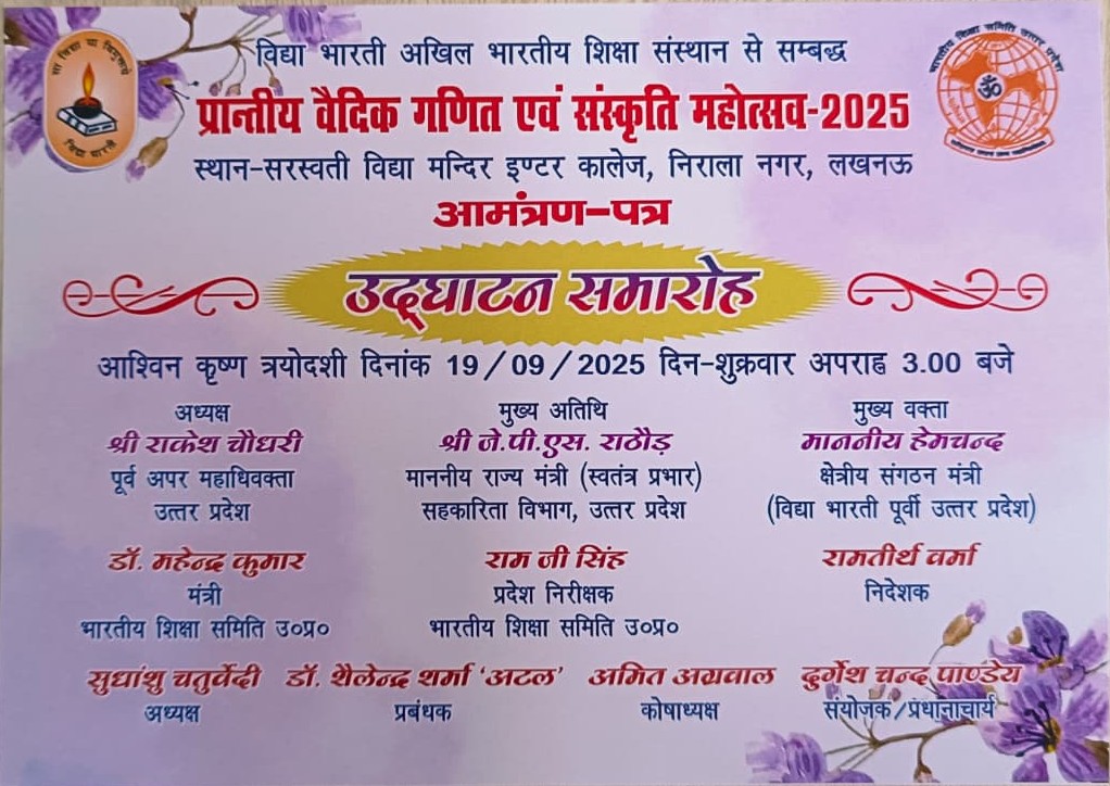 ЁЯУ░ рдкреНрд░рд╛рдиреНрддреАрдп рд╡реИрджрд┐рдХ рдЧрдгрд┐рдд рдПрд╡рдВ рд╕рд╛рдВрд╕реНрдХреГрддрд┐рдХ рдорд╣реЛрддреНрд╕рд╡ 2025