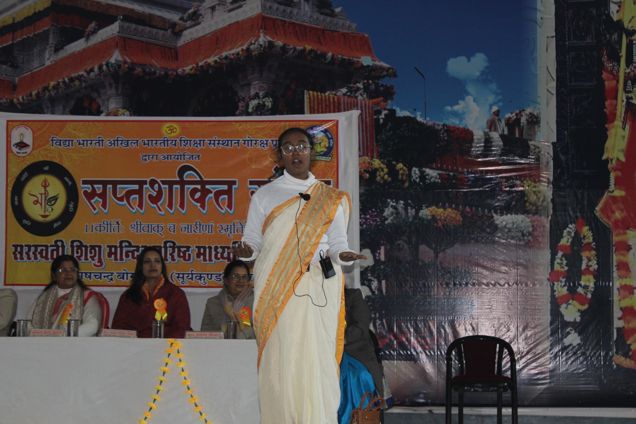 рд╕рд░рд╕реНрд╡рддреА рд╢рд┐рд╢реБ рдордиреНрджрд┐рд░ рд╡рд░рд┐рд╖реНрда рдорд╛рдзреНрдпрдорд┐рдХ рд╡рд┐рджреНрдпрд╛рд▓рдп, рд╕реВрд░реНрдпрдХреБрдгреНрдб, рдЧреЛрд░рдЦрдкреБрд░ рдореЗрдВ рдЖрдпреЛрдЬрд┐рдд тАШрд╕рдкреНрддрд╢рдХреНрддрд┐-рд╕рдВрдЧрдотАЩ рдХрд╛рд░реНрдпрдХреНрд░рдо рдореЗрдВ рдореБрдЦреНрдп рдЕрддрд┐рдерд┐ рд╢реНрд░реАрдорддреА рдирд┐рдзрд┐ рджреНрд╡рд┐рд╡реЗрджреА рдЬреА рдиреЗ рдорд╛рддреГрд╢рдХреНрддрд┐ рдХреА рднреВрдорд┐рдХрд╛ рдХреЛ рд░реЗрдЦрд╛рдВрдХрд┐рдд рдХрд░рддреЗ рд╣реБрдП рдХрд╣рд╛ рдХрд┐ рдмрд╛рд▓рдХ рдХреЗ рд╕рд░реНрд╡рд╛рдВрдЧреАрдг рд╡рд┐рдХрд╛рд╕ рдХреА рдЖрдзрд╛рд░рд╢рд┐рд▓рд╛ рдорд╛рддрд╛ рд╣реА рд╣реЛрддреА рд╣реИред