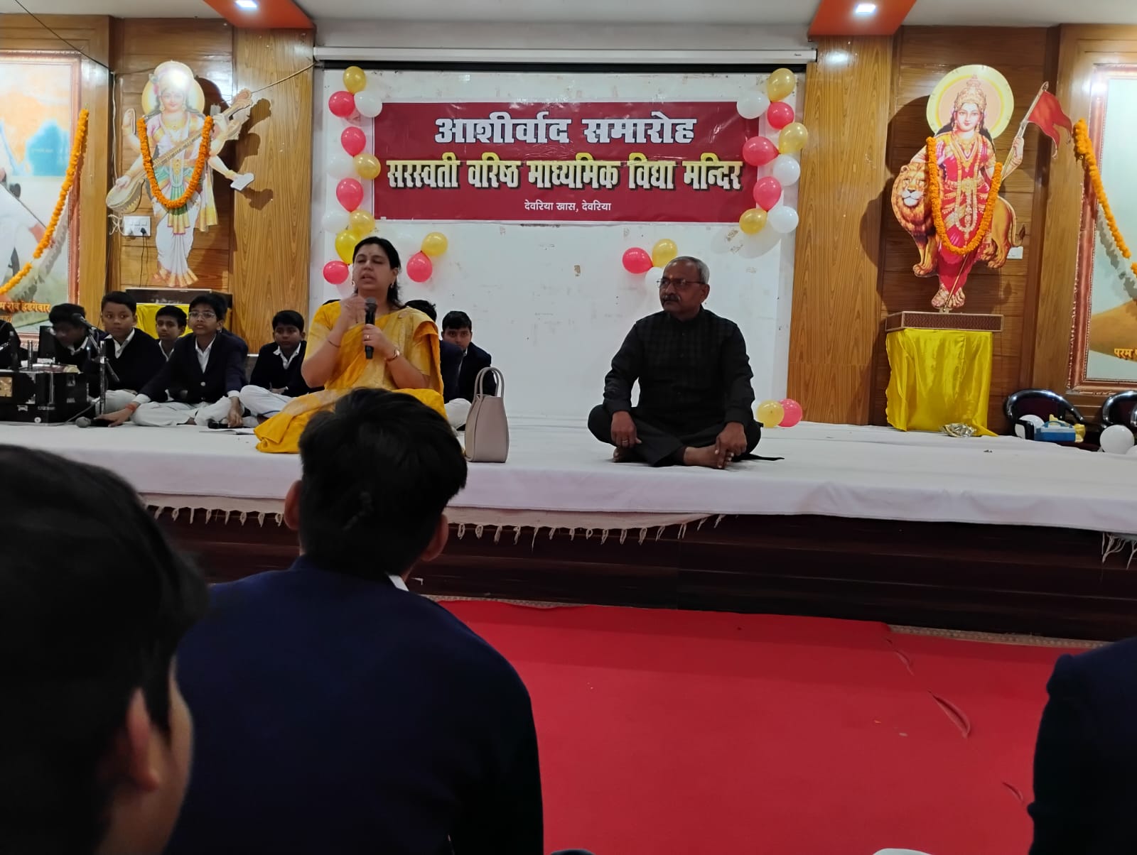 सरस्वती वरिष्ठ माध्यमिक विद्या मंदिर के माधव सभागार में कक्षा 10वीं एवं 12वीं के बोर्ड परीक्षा में सम्मिलित होने वाले विद्यार्थियों के लिए आशीर्वाद / विदाई समारोह का आयोजन गरिमामय एवं प्रेरणादायी वातावरण में सम्पन्न हुआ।