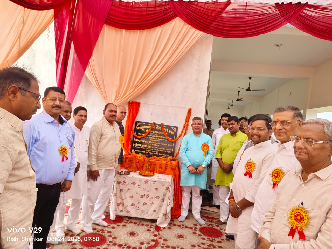 विमल डालमिया जी, प्रमोद डालमिया जी एवं प्रांत प्रचारक जी ने अपने कर-कमलों से शिक्षण कक्षों का शिलान्यास किया।