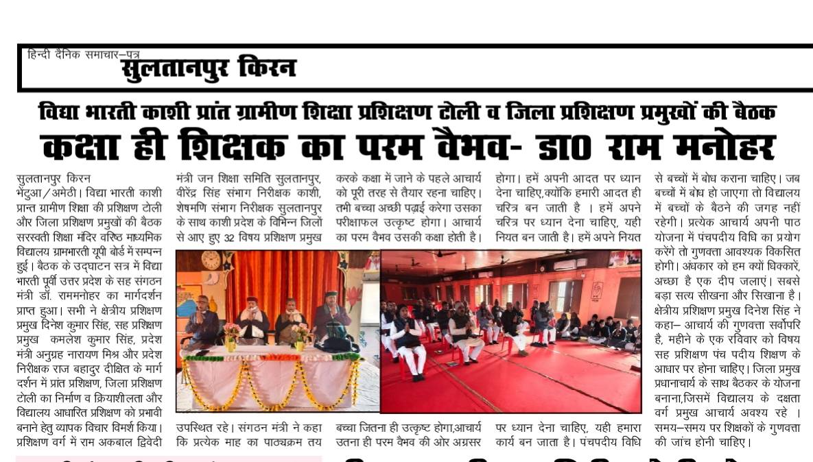 ग्रामभारती धम्मौर में यूपी बोर्ड अंतर्गत ग्रामीण प्रशिक्षण टोली की महत्वपूर्ण बैठक सफलतापूर्वक सम्पन्न हुई, जिसमें शैक्षिक गुणवत्ता, प्रशिक्षण व्यवस्था एवं आगामी कार्ययोजनाओं पर सार्थक चर्चा की गई।