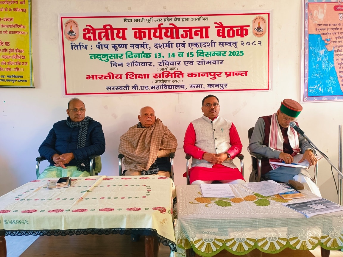 рд╡рд┐рджреНрдпрд╛ рднрд╛рд░рддреА рдкреВрд░реНрд╡реА рдЙрддреНрддрд░ рдкреНрд░рджреЗрд╢ рдХреНрд╖реЗрддреНрд░ рдХреА рдХреНрд╖реЗрддреНрд░реАрдп рдХрд╛рд░реНрдпрдпреЛрдЬрдирд╛ рдмреИрдардХ рдХреЗ рджреНрд╡рд┐рддреАрдп рджрд┐рд╡рд╕, рджрд┐рдирд╛рдВрдХ 14 рджрд┐рд╕рдореНрдмрд░ 2025 рдХреЛ рд╕рд░рд╕реНрд╡рддреА рдмреА.рдПрдб. рдорд╣рд╛рд╡рд┐рджреНрдпрд╛рд▓рдп, рд░реВрдорд╛ (рдХрд╛рдирдкреБрд░) рдореЗрдВ рд╕рддреНрд░ рдХрд╛ рд╢реБрднрд╛рд░рдореНрдн рд╣реБрдЖред рдЗрд╕ рдЕрд╡рд╕рд░ рдкрд░ рд╡рд┐рджреНрдпрд╛ рднрд╛рд░рддреА рдХреА рдкрддреНрд░рд┐рдХрд╛ тАЬрд╢рд┐рд╢реБ рдордиреНрджрд┐рд░ рд╕рдиреНрджреЗрд╢тАЭ рдХреЗ рд╡рд┐рд╢реЗрд╖рд╛рдВрдХ рдХрд╛ рд╡рд┐рдореЛрдЪрди рд╡рд┐рджреНрдпрд╛ рднрд╛рд░рддреА рдЕрдЦрд┐рд▓ рднрд╛рд░рддреАрдп рд╕рд╣ рд╕рдВрдЧрдарди рдордВрддреНрд░реА рдЖрджрд░рдгреАрдп рдпрддреАрдиреНрджреНрд░ рд╢рд░реНрдорд╛ рдЬреА рджреНрд╡рд╛рд░рд╛ рдХрд┐рдпрд╛ рдЧрдпрд╛ред