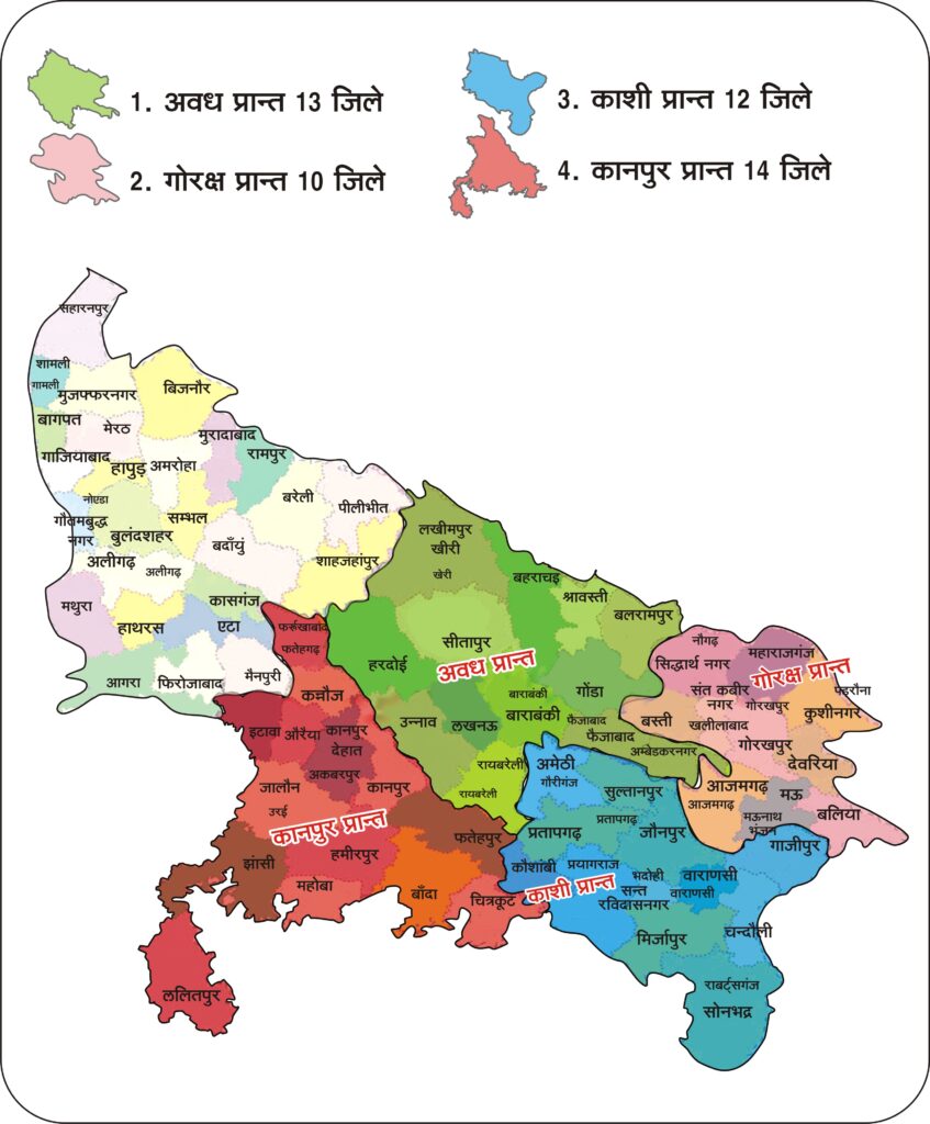 1. गोरक्ष प्रान्त 2. काशी प्रान्त 3. अवध प्रान्त 4. कानपुर प्रान्त
