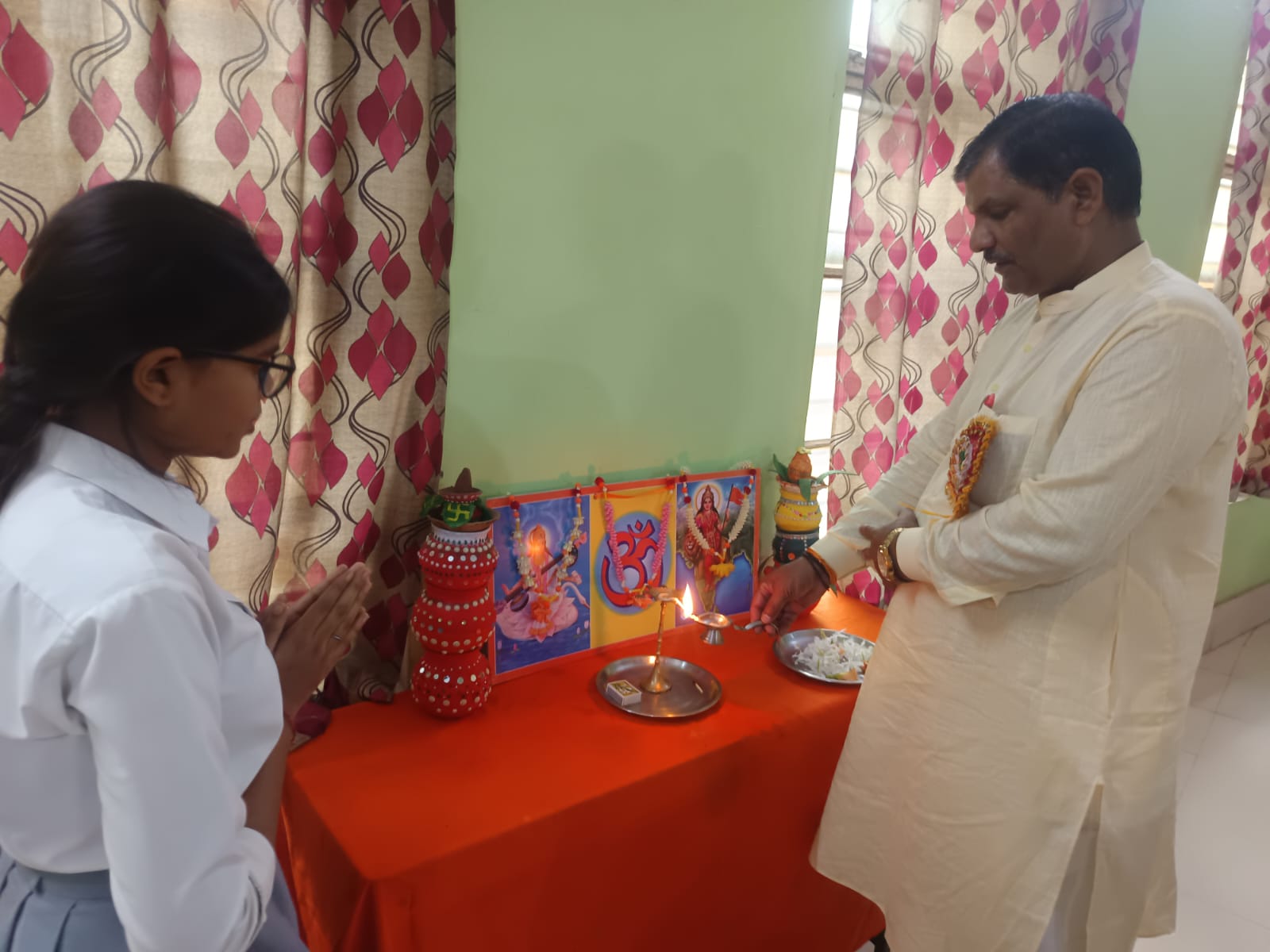 рдХрд╛рд░реНрдпрдХреНрд░рдо рдХрд╛ рд╢реБрднрд╛рд░рдВрдн рд╢реНрд░реАрдорд╛рди рдЕрдпреЛрдзреНрдпрд╛ рдкреНрд░рд╕рд╛рдж рдорд┐рд╢реНрд░ рдЬреА (рдкреНрд░рджреЗрд╢ рдирд┐рд░реАрдХреНрд╖рдХ, рднрд╛рд░рддреАрдп рд╢рд┐рдХреНрд╖рд╛ рд╕рдорд┐рддрд┐ рдХрд╛рдирдкреБрд░ рдкреНрд░рд╛рдВрдд) рдПрд╡рдВ рд╢реНрд░реАрдорд╛рди рд╢рд┐рд╡рдХрд░рдг рдЬреА (рд╕рдореНрднрд╛рдЧ рдирд┐рд░реАрдХреНрд╖рдХ) рджреНрд╡рд╛рд░рд╛ рдорд╛рдВ рд╕рд░рд╕реНрд╡рддреА рдХреЗ рдЪрд┐рддреНрд░ рдкрд░ рджреАрдк рдкреНрд░рдЬреНрдЬреНрд╡рд▓рди рдПрд╡рдВ рдкреБрд╖реНрдкрд╛рд░реНрдЪрди рд╕реЗ рд╣реБрдЖред