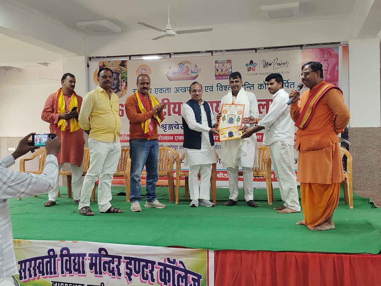 рд╢реНрд░реГрдВрдЧрд╡реЗрд░рдкреБрд░ рдореЗрдВ рд╡рд┐рдзрд╛рдпрдХ рдорд╣реЛрджрдп рдиреЗ рдпрд╛рддреНрд░рд╛ рдкрд░ рдкрд╣реБрдБрдЪреАрдВ рдмрд╣рдиреЛрдВ рдХрд╛ рд╕реНрд╡рд╛рдЧрдд рдХрд░рддреЗ рд╣реБрдП рдХрд╣рд╛ рдХрд┐тАФ