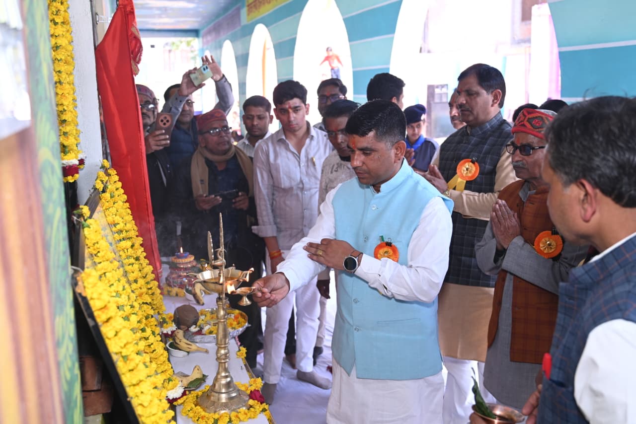 рдЕрддрд┐рдерд┐рдпреЛрдВ рджреНрд╡рд╛рд░рд╛ рдкреВрдЬрди, рд╢рд┐рд▓рд╛ рдЕрдирд╛рд╡рд░рдг рдПрд╡рдВ рдХрдХреНрд╖ рдЕрдирд╛рд╡рд░рдг рдХреЗ рдкрд╢реНрдЪрд╛рдд рдХрд╛рд░реНрдпрдХреНрд░рдо рдХрд╛ рд╢реБрднрд╛рд░рдВрдн рд╣реБрдЖред рд╡рдВрджрдирд╛ рдЙрдкрд░рд╛рдВрдд рд╡рд┐рджреНрдпрд╛рд▓рдп рдХреЗ рдкреНрд░рдзрд╛рдирд╛рдЪрд╛рд░реНрдп рд╢реНрд░реА рдмрд▓рд░рд╛рдо рд╕рд┐рдВрд╣ рдЬреА рджреНрд╡рд╛рд░рд╛ рдЕрддрд┐рдерд┐рдпреЛрдВ рдХрд╛ рдкрд░рд┐рдЪрдп, рд╕рдореНрдорд╛рди рдПрд╡рдВ рд╡рд┐рджреНрдпрд╛рд▓рдп рд╡реГрддреНрдд рдкреНрд░рд╕реНрддреБрдд рдХрд┐рдпрд╛ рдЧрдпрд╛ред