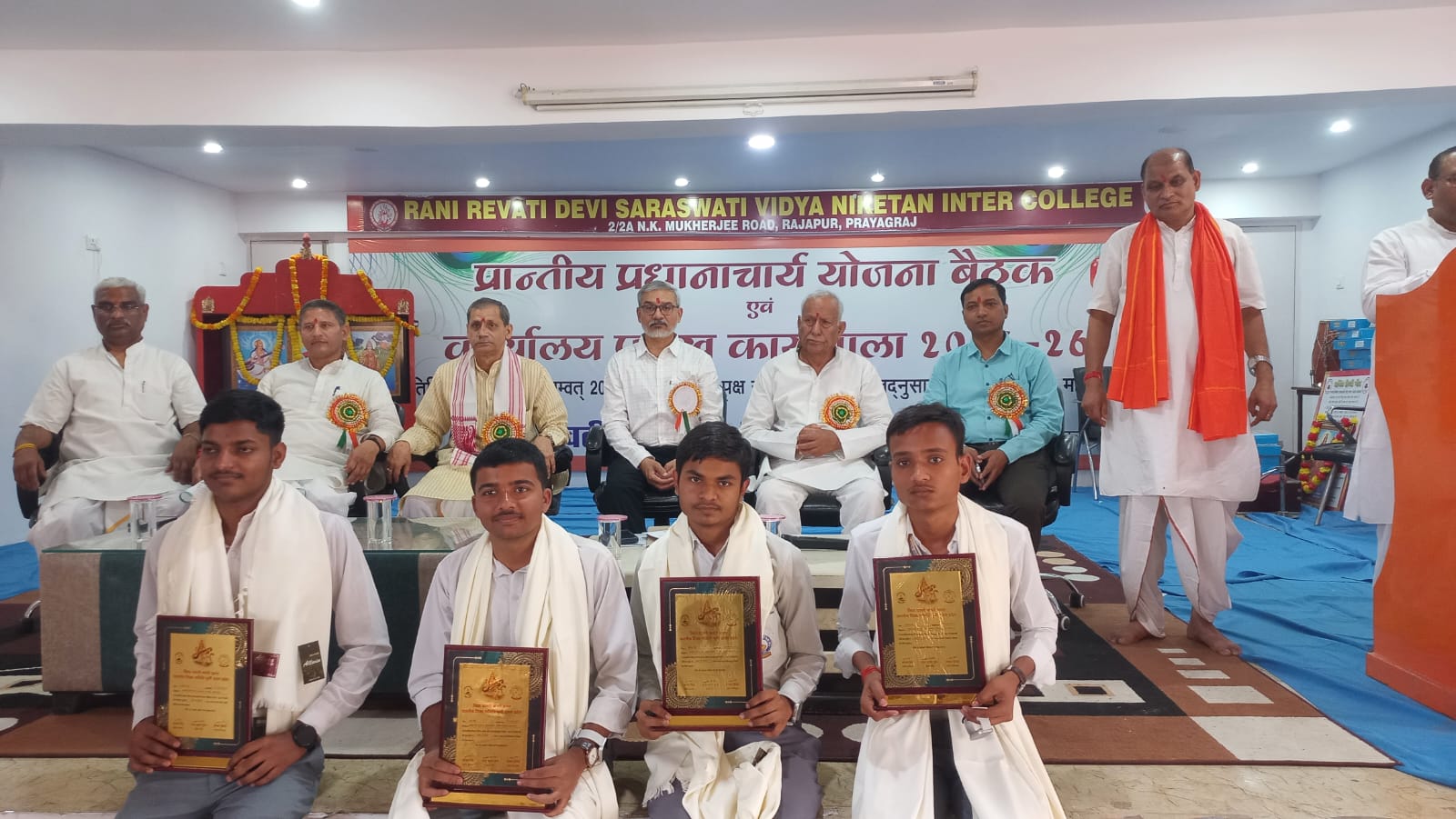 विद्या भारती से संबद्ध काशी प्रांत के रानी रेवती देवी सरस्वती विद्या निकेतन इंटर कॉलेज राजापुर प्रयागराज में पांच दिवसीय प्रांतीय प्रधानाचार्य योजना बैठक का उद्घाटन क्षेत्रीय संगठन मंत्री हेमचंद्र द्वारा संपन्न हुआ। कार्यक्रम के प्रारंभ में विद्यालय के प्रधानाचार्य बांके बिहारी पाण्डेय ने आए हुए समस्त प्रधानाचार्यों एवं अतिथियों का स्वागत रोली, अक्षत एवं अंग वस्त्रम से किया।